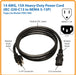 - Heavy-Duty 3 prong power cord delivers 15 amps with a 14 gauge (AWG) cable. Unlike other 10 Amp power cords, this cable matches standard household outlets amperage and provides a safety margin for high powered devices.